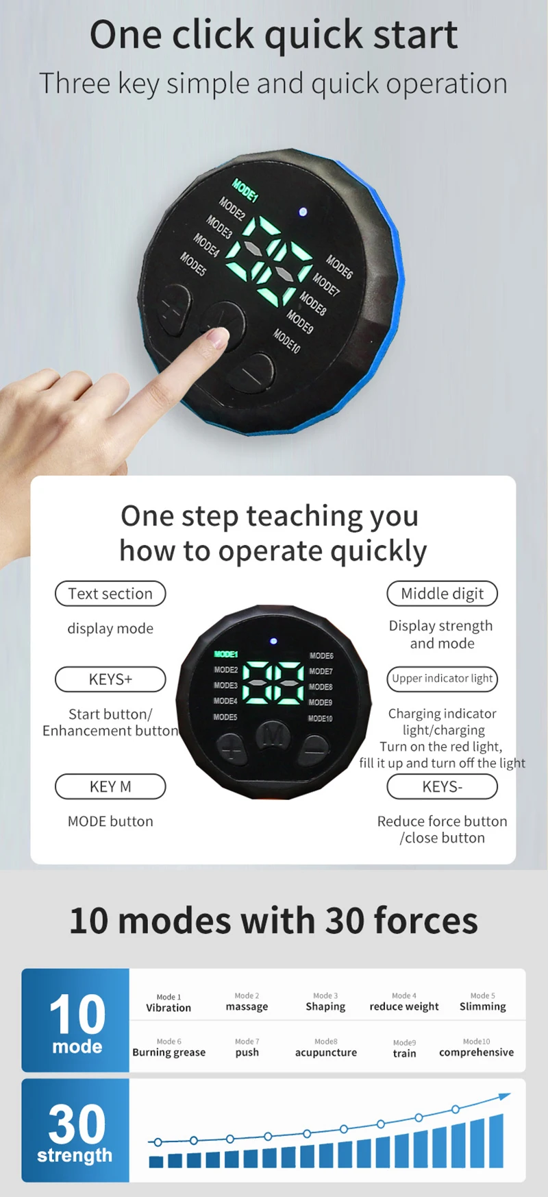 ⚡ Alcance seus objetivos de fitness com 10 modos ajustáveis e 30 níveis de intensidade! Compacto, prático e eficiente para tonificação abdominal. Compre agora!